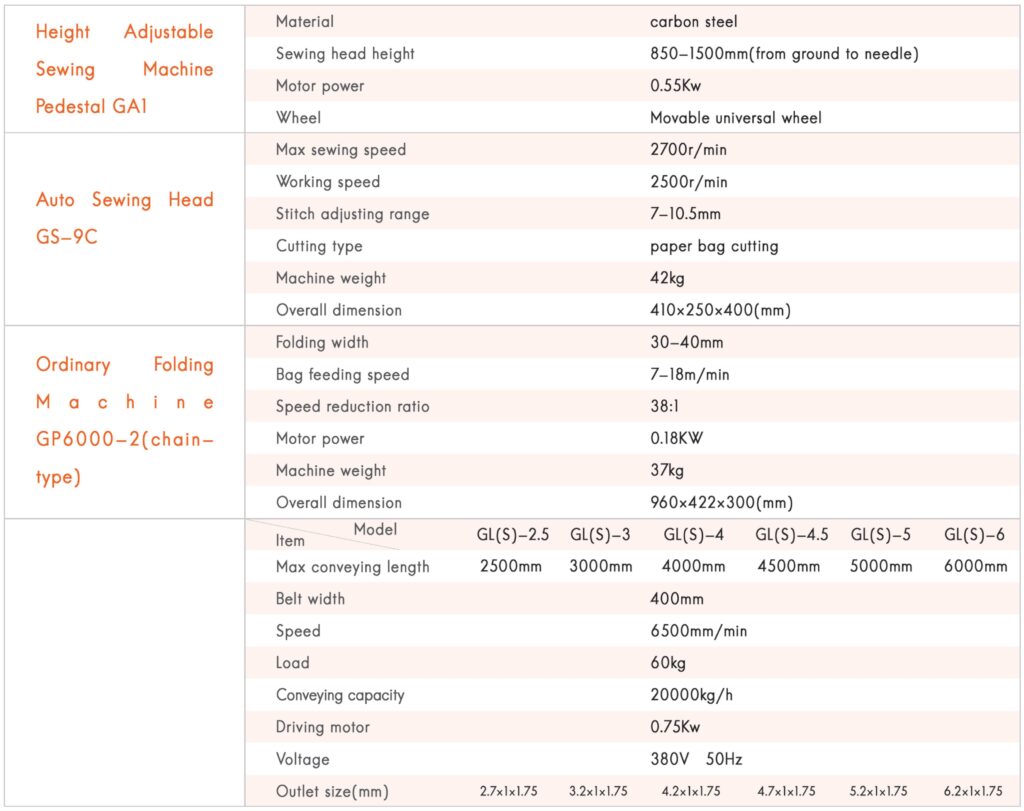 Application industry: ideal special equipment for sewing and conveying bulk materials such as chemical, grain, building materials, feed, seeds, ports and docks after canning.