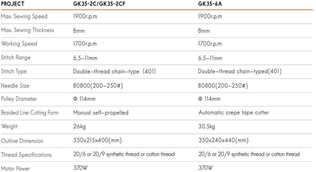 GK35-2C is double chain industrial sewing machines, semi-automatic machinery shear thread. For food, chemicals, ports and other industries such as for flour bags, sacks and other bag packing product closing purposes. The sewing machine has features of high speed, low noise, easy maintenance and long service life.