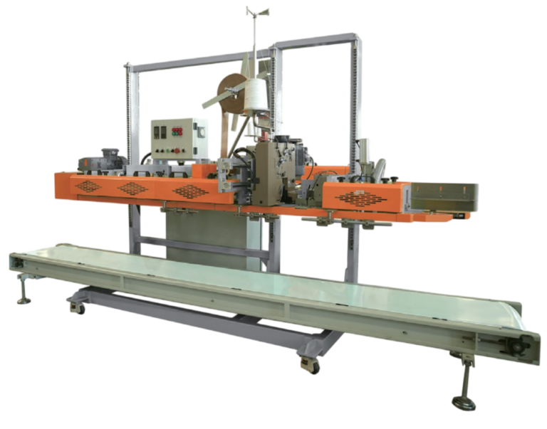 bag mouth cleanning (option) → Cutter: trim bag mouth→ sewing machine:outer bag sewing →hot melt tape→ inner bag heating(4 sets heating block heating) →roller pressing